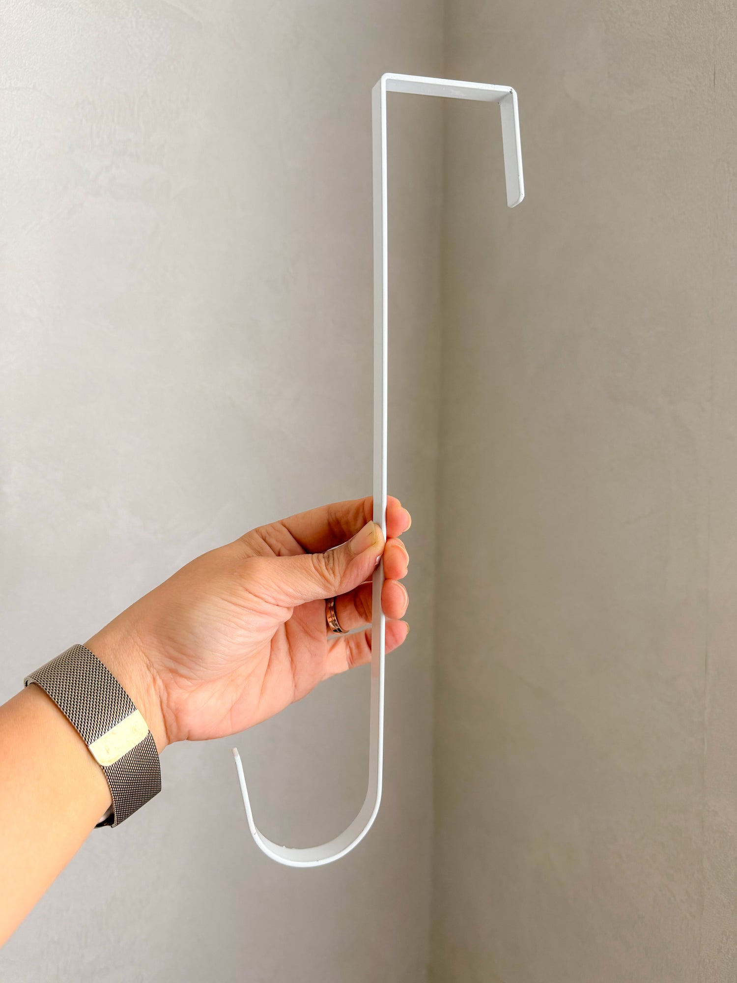 Display your wreath in style with our reusable white door hanger. Made from wrought iron, it's the perfect way to showcase your favorite seasonal wreaths year after year. Keep your door decor fresh and versatile with this must-have accessory.