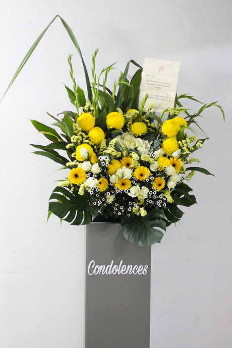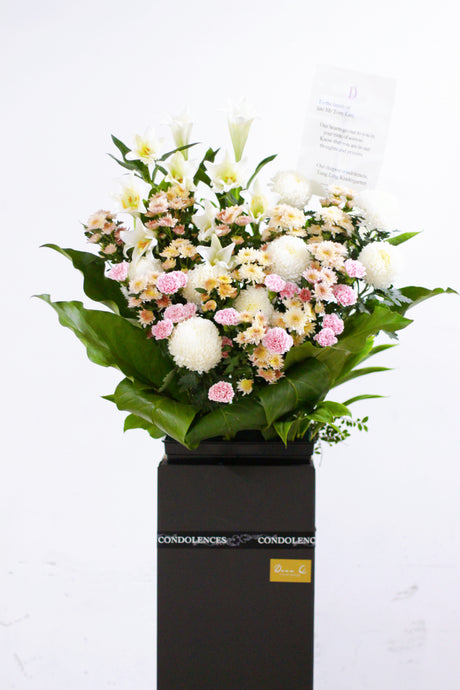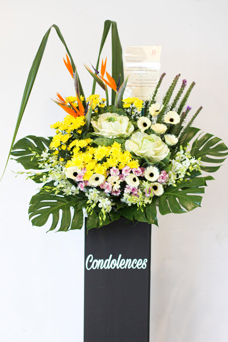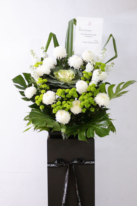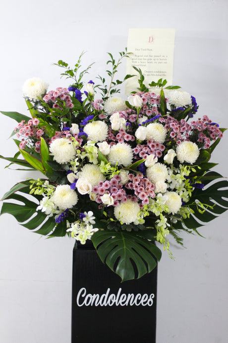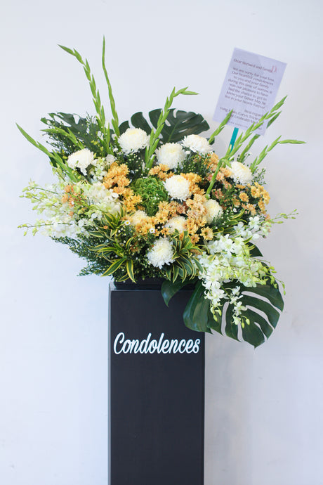 Use fresh flowers to demonstrate your unwavering support with the piercing craftsmanship of Dawn Q today. Buy condolence flowers from us, and receive same-day delivery in Singapore for all our stands, for orders placed before 3pm on weekdays and before 11am on Saturdays.