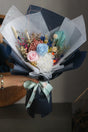 Refined and enduring, Azure Promise is a preserved Valentine’s bouquet designed to symbolise love that remains steady over time. Featuring preserved blue and blush roses at its centre, complemented by preserved hydrangea, dried florals, and textured accents, this bouquet blends softness with strength in a timeless palette.