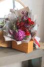 A rich and romantic arrangement featuring lush red roses paired with deep berry-toned blooms and a bold hydrangea focal. Accented with textured fillers and wrapped in soft neutral layers, Crimson Amour is designed to make a statement — passionate, elegant, and unforgettable.