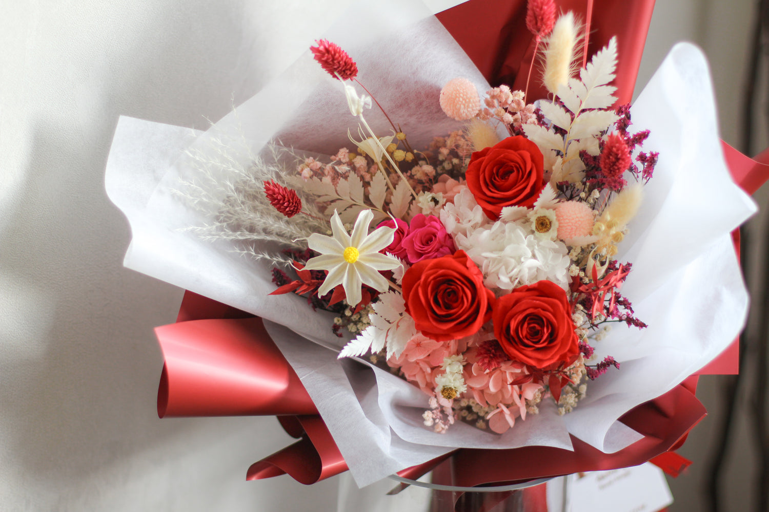 Introducing the Eternal Love bouquet—where passion meets elegance in a stunning arrangement of red and hot pink preserved roses, soft pink hydrangea, and a delicate mix of filler flowers. This timeless design captures the essence of everlasting love, with each bloom carefully preserved to maintain its beauty for years to come. Perfect for expressing deep affection or commemorating special moments, Eternal Love is a bouquet that will never fade, just like the love it represents. 🌹💕